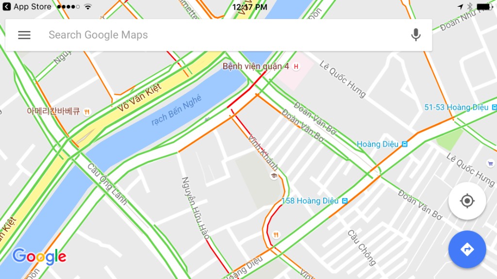 Hôm nay mình thấy trên Google Maps bản ứng dụng smartphone bắt đầu cho hiện real-time các tình trạng traffic (lưu lượng lưu thông) trên các tuyến đường. Vẫn chưa biết có hiệu quả hay không, nếu bạn nào thường hay đi trên các đoạn đông người vào giờ cao điểm thì kiểm tra thử nhé.